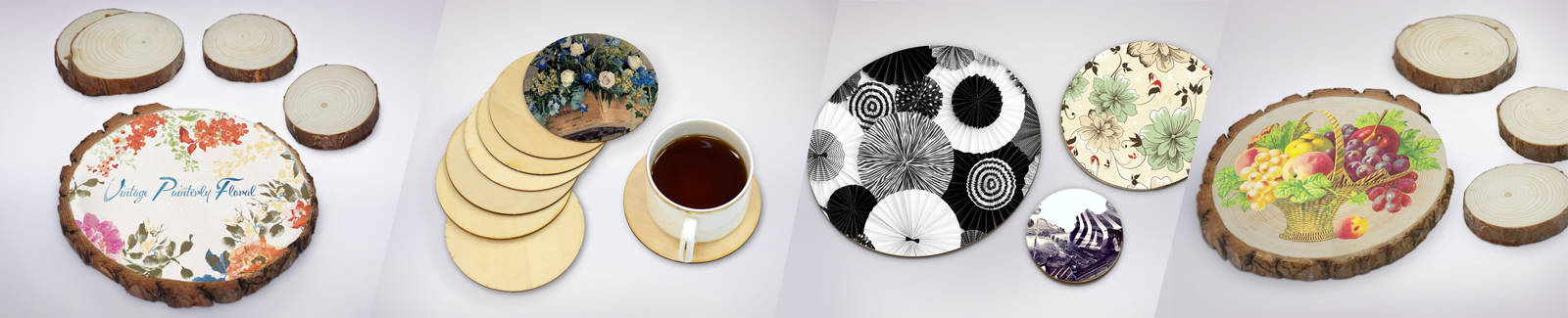 Personalized natural wood coasters – a better way of promoting an event. Decorative natural wood coasters made from wood slices do more than protect surfaces if they are used as items to promote the specials in your restaurant or pub. Coasters can vary in diameter and thickness and this is why you can choose a simple look by printing on thin wood substrate finishes or by printing on rustic wood coasters for durable and impressive personalization results.
