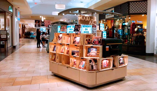 Print in shopping mall with KIOSK for wood photo block printing, phone case or mobile accessories customization, pop sockets, photo puzzles, and more.